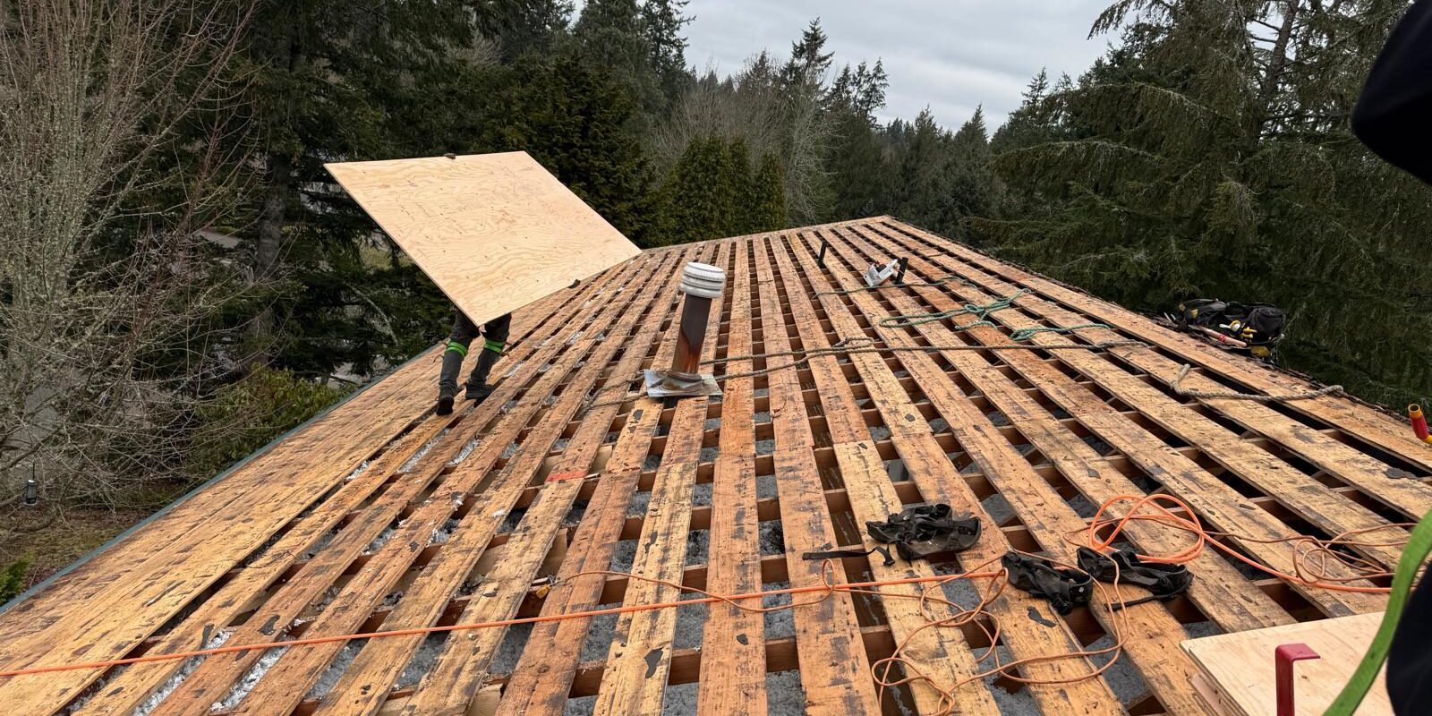 Once the old materials are cleared away, we thoroughly inspect the decking for rot or damage. If needed, we replace weak or uneven plywood to create a smooth and secure surface. This step guarantees that when we install your underlayment and shingles, everything lays flat, performs correctly, and lasts for years to come.